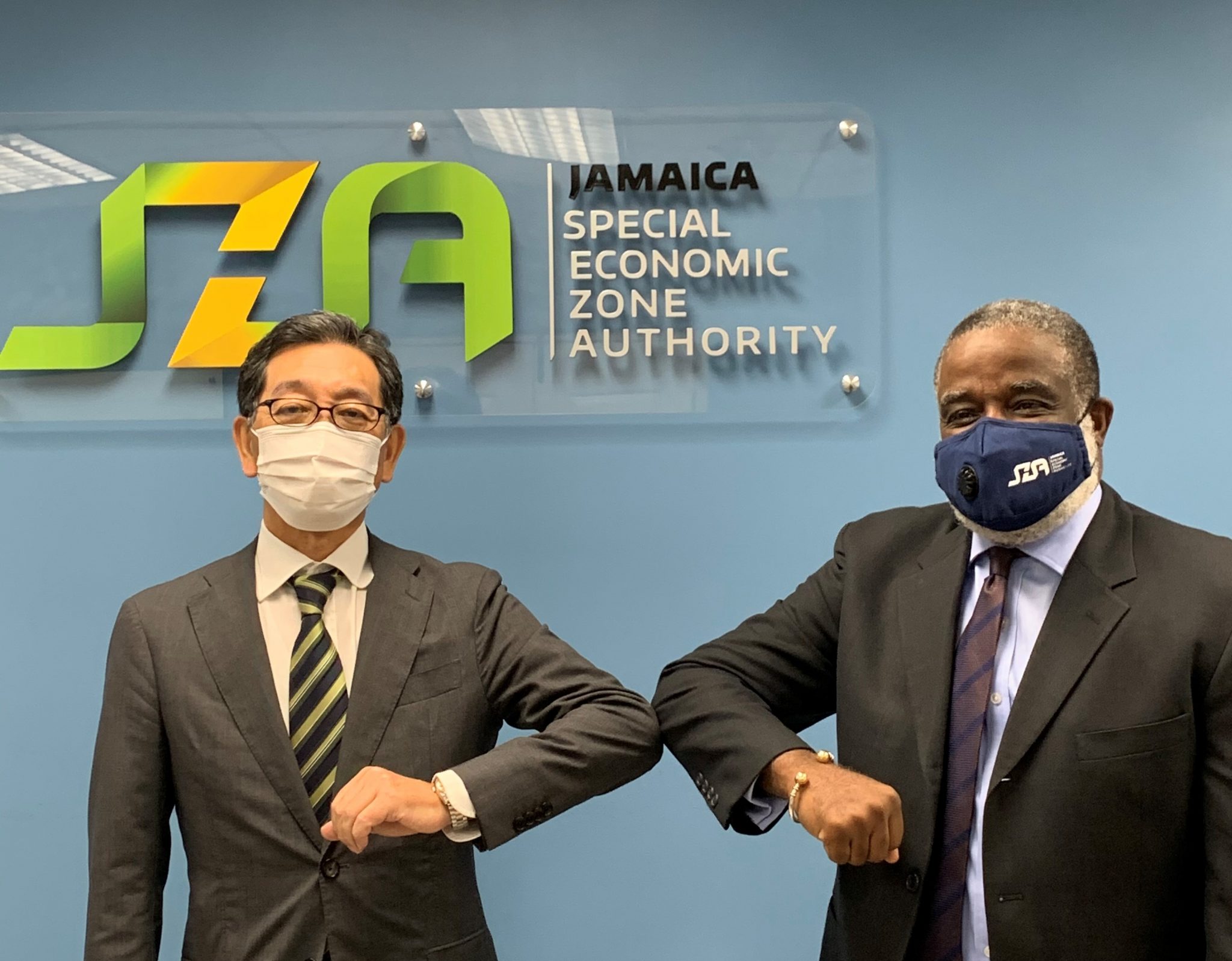 On 4 February 2021, Ambassador Fujiwara visited the Jamaica Special Economic Zone Authority and received a briefing from Dr. Eric Deans, CEO, about the Special Economic Zone initiatives in Jamaica, including the Logistics Hub concept. They exchanged ideas on how to further strengthen the economic relations between Japan and Jamaica.